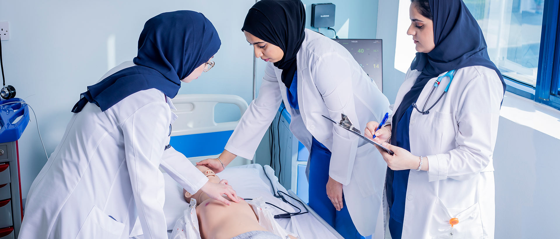 A state-of-the-art clinical simulation and learning center designed as an actual modern hospitalr